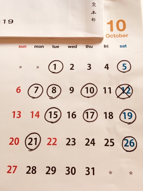 10月12日台風の為、お休みします。