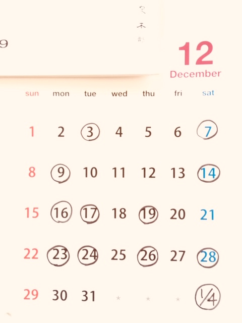 12月は学校の毛筆課題製作の為、振替が多いのでご注意下さいませ。