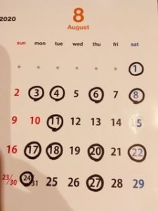 お盆休みがあります。振替日にご注意下さい
